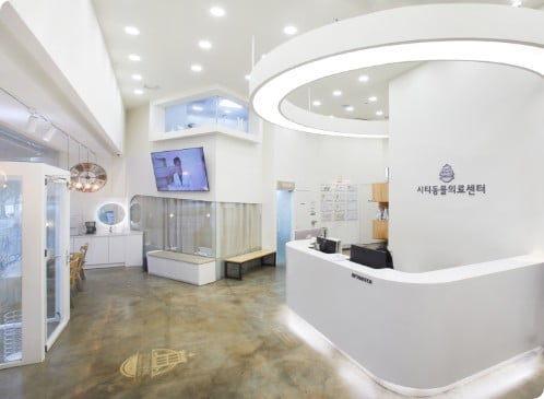 불안한 첫 발걸음이 안심으로 바뀌는 공간, 따뜻함과 전문성을 담은 일산시티동물의료센터의 로비입니다.